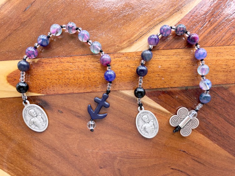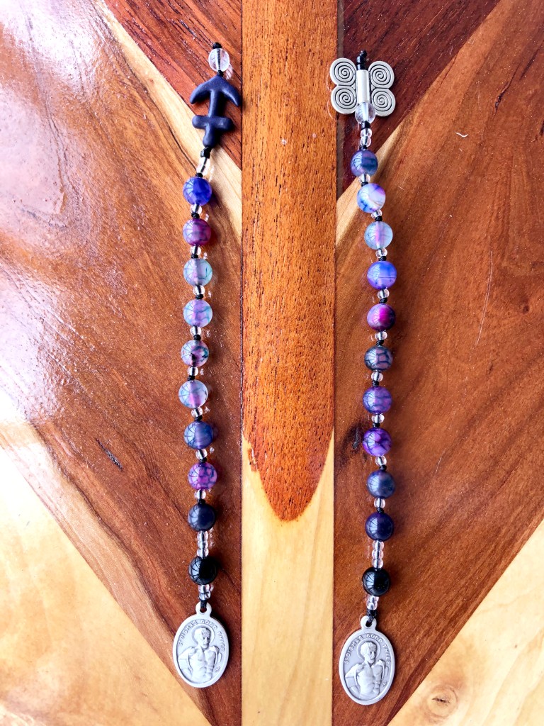 The rosary itself is perfect for this – knowing we are held by the ultimate loving Mother, but I felt called to make something specific and with a different archetype or Saint. Enter – Saint Dismas. The “good bad guy” who was never really bad.