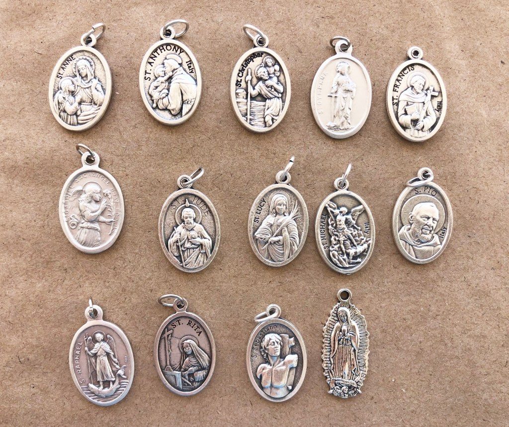 Here is a list of patron saint medals to choose from. Availability may vary. Links are to pre-made strands available directly from my Etsy store.