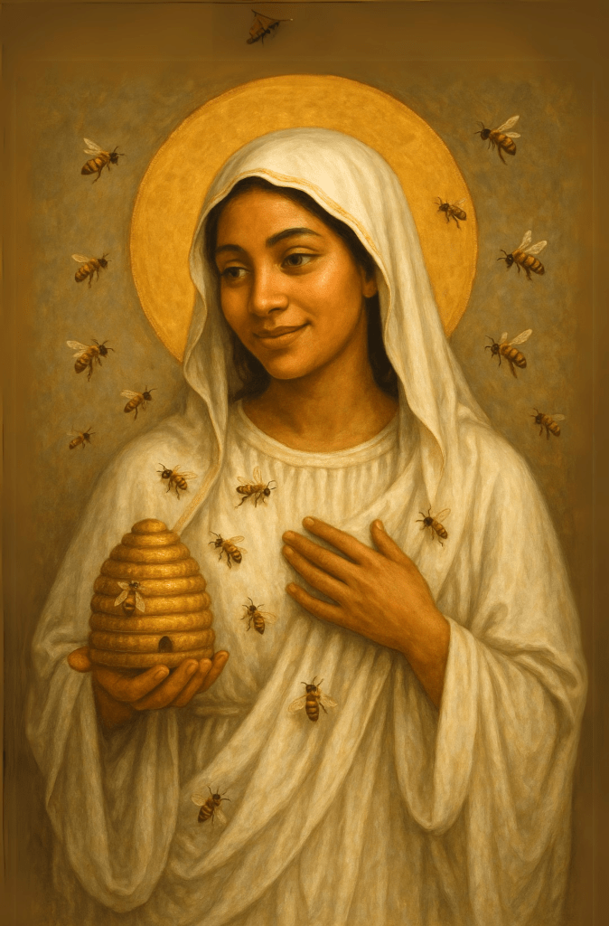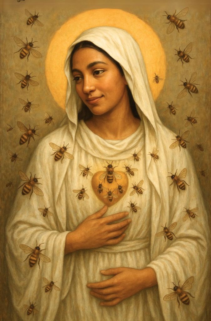 If like me, you often feel helpless in the face of the many atrocities, there is a Blessed Mother for our times: Our Lady of Bees 🍯.